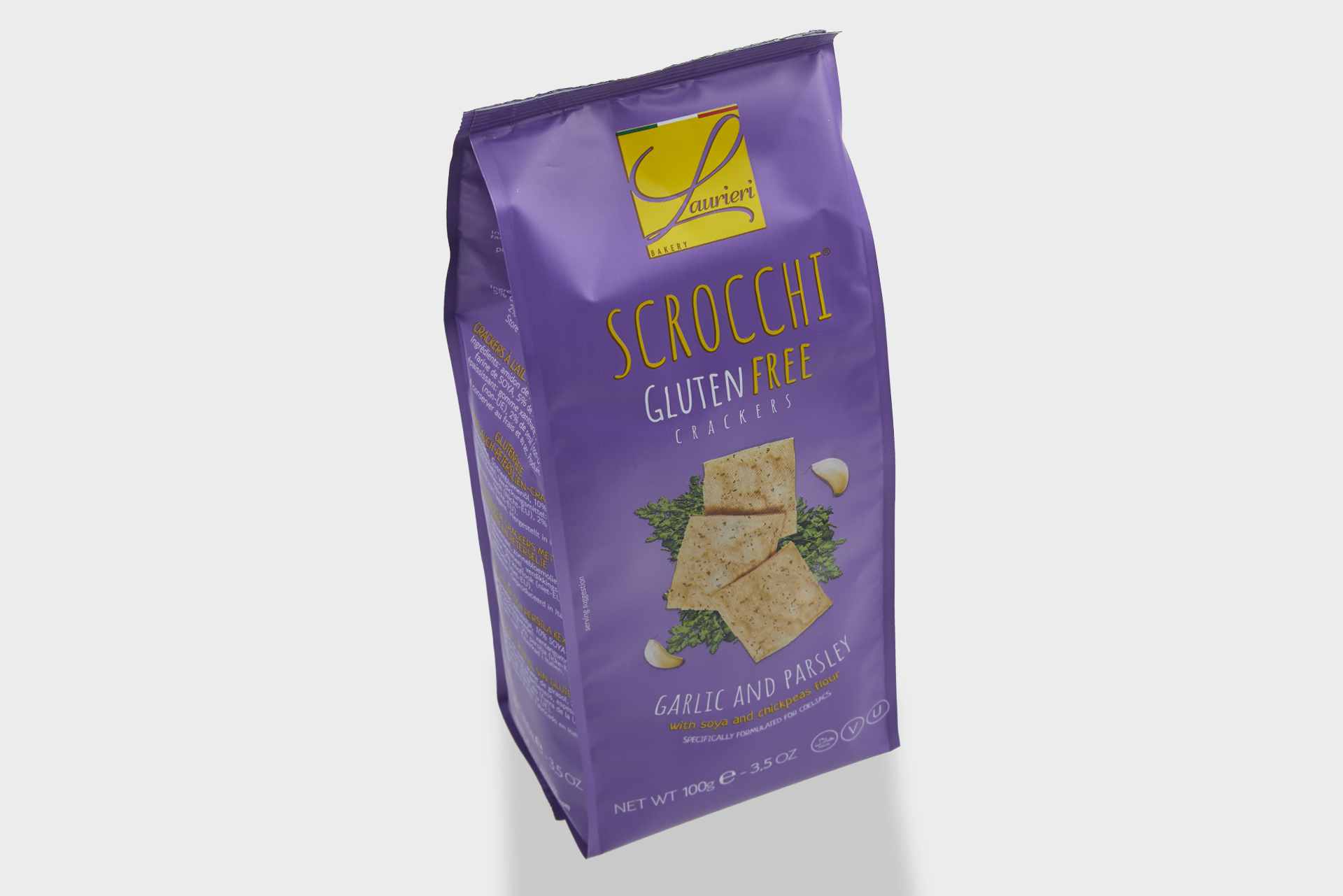 Glutenfri scrocchi “kiks” med hvidløg og persille fra vores leverandør i Syditalien.